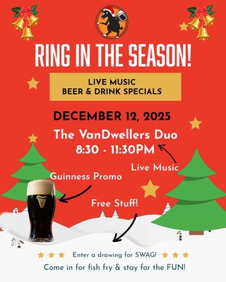 Ring in the season, and stop by Thirsty Goat for live tunes by The VanDwellers Duo, tasty bites, and handcrafted cocktails! Plus, enter their drawing for a chance to win free swag. Come in for the fish fry, stay for the fun.